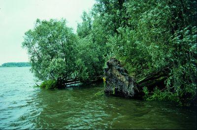 Kale, slikkige oevers en tijdelijk door bedekking met veek kaal geworden op- en aanwassen zijn van oudsher van grote betekenis voor pionierbegroeiingen (H3270), die in het benedenrivierengebied voorkomen in de vorm van de Associatie van Blauwe waterereprijs en Waterpeper (Polygono-Veronicetum anagallidisaquaticae). Na de afsluiting van het Haringvliet is de oppervlakte ervan echter sterk afgenomen door beperking van de verticale ruimte binnen de afgenomen amplitudo van het getij (intergetijdenzone). De oevers worden nu nog sneller van bovenaf gekoloniseerd door Riet (Phragmites australis), dat zich vegetatief tot beneden de laagwaterlijn kan uitbreiden. Ook de achteruitgang van de kenmerkende biezenvelden op de oevers weerspiegelt de teloorgang van de vroegere Biesbosch. Dit geldt in het bijzonder voor de gemeenschappen met Drie kantige bies (Schoenoplectus triqueter), een soort die in Europa strikt gebonden is aan het zoetwatergetijdensysteem en in ons land een zwaartepunt had. De vindplaatsen van deze soort in de Biesbosch zijn tegenwoordig schaars, en veelal betreft het kleine populaties, gemengd met pionierbegroeiingen.
