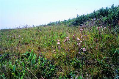 De duinvalleien van het kalkgrensgebied worden gekenmerkt door een soortenrijk laag kruipwilgstruweel met Klein en Rond wintergroen (Pyrola minor en Pyrola rotundifolia) en diverse zeldzame mos- en korstmossoorten. Het betreft een vorm van habitattype 2170, dat onder meer voorkomt in de Pyrolavlakte en de Verbrande Pan. In heischraal duingrasland (H2130), op het scharnierpunt van droog grasland naar vochtige duinvallei, wordt in de Verbrande Pan het Rozenkransje (Antennaria dioica) aangetroffen. Deze tweehuizige plantensoort is in ons land de laatste jaren enorm achteruitgegaan en staat op de rand van uitsterven. Van de vochtige schraallanden aan de binnenduinrand is in ons land weinig meer over. Ten noorden van Bakkum wordt door middel van natuurontwikkeling getracht dit bijzondere milieu te herstellen op voormalige landbouwgrond. Een van de meest spectaculaire resultaten hier is de terugkeer van de Harlekijn (Anacamptis morio).