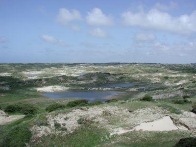 In de publicatie van Doing wordt dit landschap het Helmlandschap of A-landschap genoemd. Deze smalle zone, vooral begroeid met open pioniergemeenschappen met veel Helm, heeft een kustbeschermende functie en wordt daarom actief beheerd. Daarachter ligt een ongeveer één kilometer brede zone met paraboolduinen en uitblazingsvalleien, het Dauwbraamlandschap of Rlandschap. De duinen liggen in zuidwestnoordoostelijke richting en zijn tot maximaal dertig meter hoog. Op de hellingen wordt duingrasland aangetroffen, terwijl de valleien zijn begroeid met struwelen, vochtige graslanden, kleinezeggemoerassen en natte strooiselruigten. In deze zone liggen de meeste infiltratieplassen.