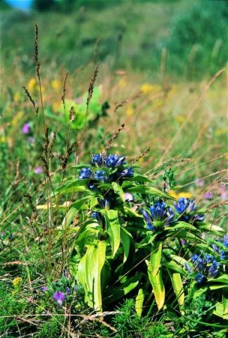 Tot de belangrijkste natuurwaarden in het gebied behoren ongetwijfeld de duingraslanden (prioritair habitattype 2130) en de vochtige duinvalleien (H2190). Wat het eerste betreft: deze worden in de afzonderlijke landschappen in verschillende hoedanigheid aangetroffen. Een centrale rol wordt daarbij ingenomen door het soortenrijke TaraxacoGalietum veri, dat in de duinen van Meijendel en Berkheide bijzonder veel zeldzame duinpaardenbloemen herbergt en als grote bijzonderheid de fraaie Kruisbladgentiaan. Deze associatie gedijt het best op wat vlakkere delen van het duin, die droog tot iets vochtig zijn, betrekkelijk kalkrijk en bij voorkeur worden begraasd door konijnen. Eveneens soortenrijk zijn de graslanden van het AnthyllidoSilenetum en het Sileno-Tortuletum ruraliformis, die beide het best ontwikkeld zijn in het zeedorpenlandschap. Het Anthyllido-Silenetum, dat samen met het Taraxaco-Galietum deel uitmaakt van het verbond Polygalo-Koelerion, groeit optimaal op kalkrijke noordhellingen en staat wel bekend als het 'kalkgrasland van de duinen'. Enkele opmerkelijke soorten in deze gemeenschap zijn Nachtsilene (Silene nutans), Echt bitterkruid (Picris hieracioides) en haar parasiet Bitterkruidbremraap (Orobanche picridis), Wondklaver (Anthyllis vulneraria) en mossen als Etagemos (Hylocomium splendens), Geplooid sikkelmos (Drepanocladus uncinatus) en Rozetmos (Rhodobryum roseum). Wanneer de hellingen onvoldoende begraasd worden, kunnen Kruipwilg (Salix repens) en Eikvaren (Polypodium vulgare) gaan domineren. Meijendel vormt de zuidelijkste plek in de kustduinen van ons land waar eikvarenrijke noordhellingen over een grote oppervlakte voorkomen. Het meer open maar eveneens zeer kruidenrijke Sileno-Tortuletum is de tegenhanger van het Anthyllido-Silenetum op zuidhellingen. Deze associatie is verwant aan de Duinsterretjesassociatie (Phleo-Tortuletum ruraliformis) en behoort tot het zelfde verbond (Tortulo-Koelerion). Bijzondere soorten in deze gemeenschap zijn onder andere Duinaveruit (Artemisia campestris subsp. maritima), Knolbeemdgras (Poa bulbosa) en het zeer zeldzame Bleek schildzaad (Alyssum alyssoides).